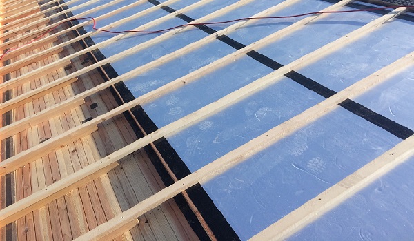↑ アキレスのキューワンボードで屋根外張り断熱の施工状況です。
