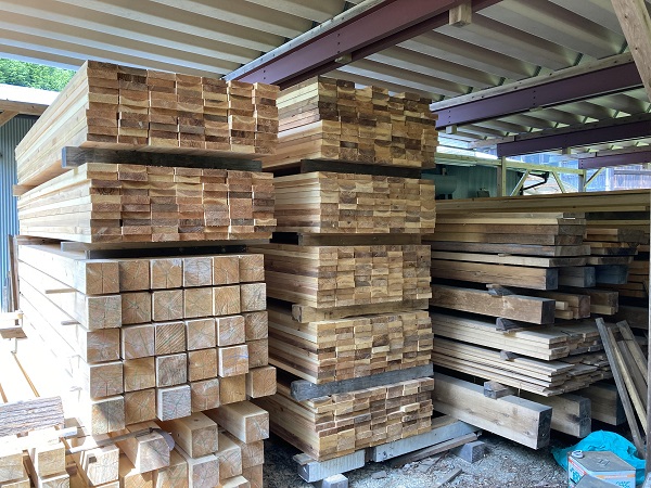 地場の木材を活かす家づくりは創業の理念であり、天然乾燥の木材ストックも続けている私どもです。