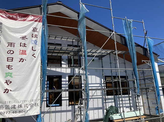 高萩の家も個性的な外観が目を引くようになってきました。