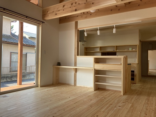 2階のお部屋と寝室は杉の赤身床板で、1階(寝室以外)は桧の床板で、共に天然乾燥した厚さ27mmの無垢板です。