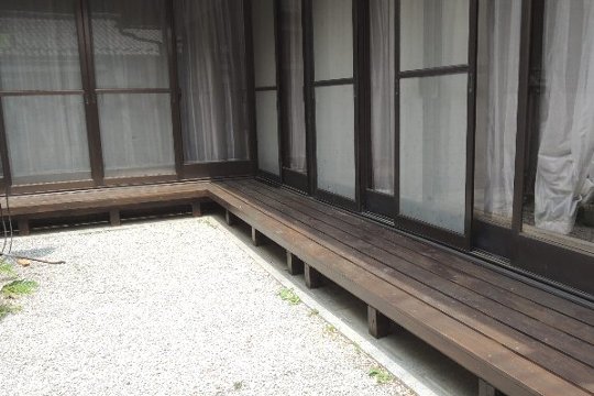 これまで使った色は、 「ライトシーダー」と「「オーク」でしたが、 今回濃いめの色である「ローズウッド」を濡れ縁に使用。