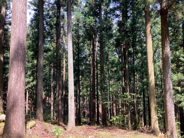 ↑ この杉の林は、私が生まれた年に植林した杉の木であり、自ら何度か間伐の手入れもしてきました。