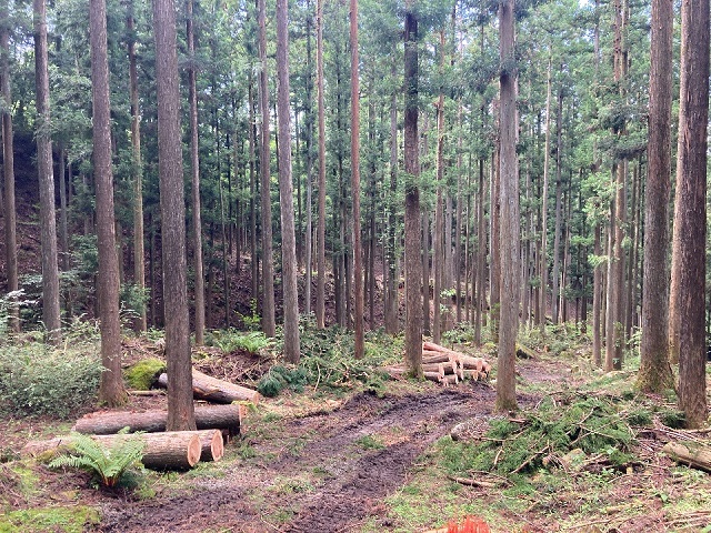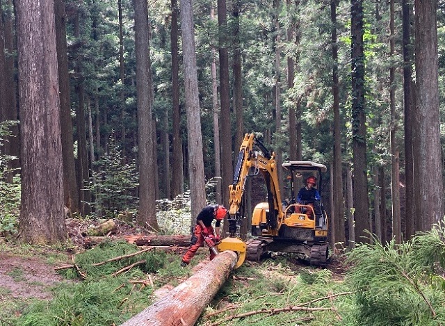 年々木材が成長して太くなり、間伐作業するにも重機が必要となってきているので、最近では間伐作業を専門の林業技術者に委託しています。
