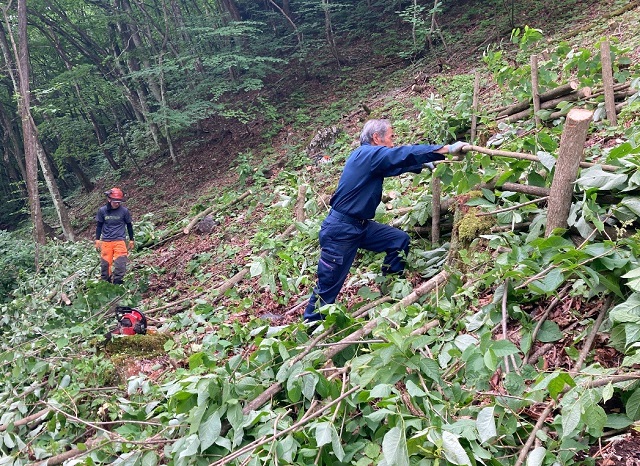 植林が減少している大きな原因の第一は、杉桧原木丸太の価格が安いため、木を伐って新たに植林する費用が捻出できない事、そして第二に新たに植林しても鹿に新芽を食され木が成長できず、また成長した太い木は熊に剝皮され木が枯れてしまうなどの、獣害被害が深刻であることです。