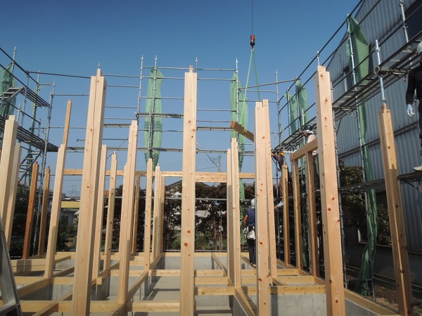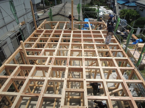 梅雨の晴れ間!というよりすっかり梅雨明け気配の26日火曜日。高崎市菅谷町にて建て方棟上げとなり、雨の心配ではなく、暑さとの闘いしながら上棟となりました。