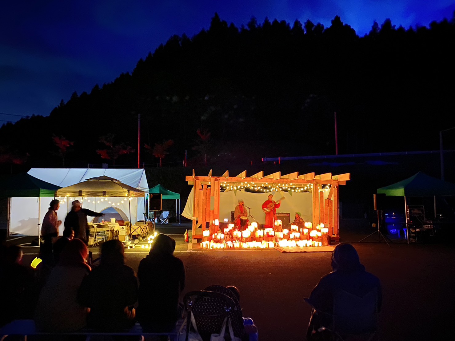 夜には200本ほどのキャンドルの灯りをメインとした明かりでコンサートが企画されており、今まで体験したことのない雰囲気のコンサートだったので僕はずっと楽しみにしていました。日本では夜でも外灯や建物の光によって真っ暗になる場所は人が生活する地域ならほとんどありません。しかし今回の会場は外灯が一本もなく、キャンドルの灯りがとても映え自然たっぷりで空気が綺麗な場所だったので頭も心も良い感じに無になることができリフレッシュすることができました!