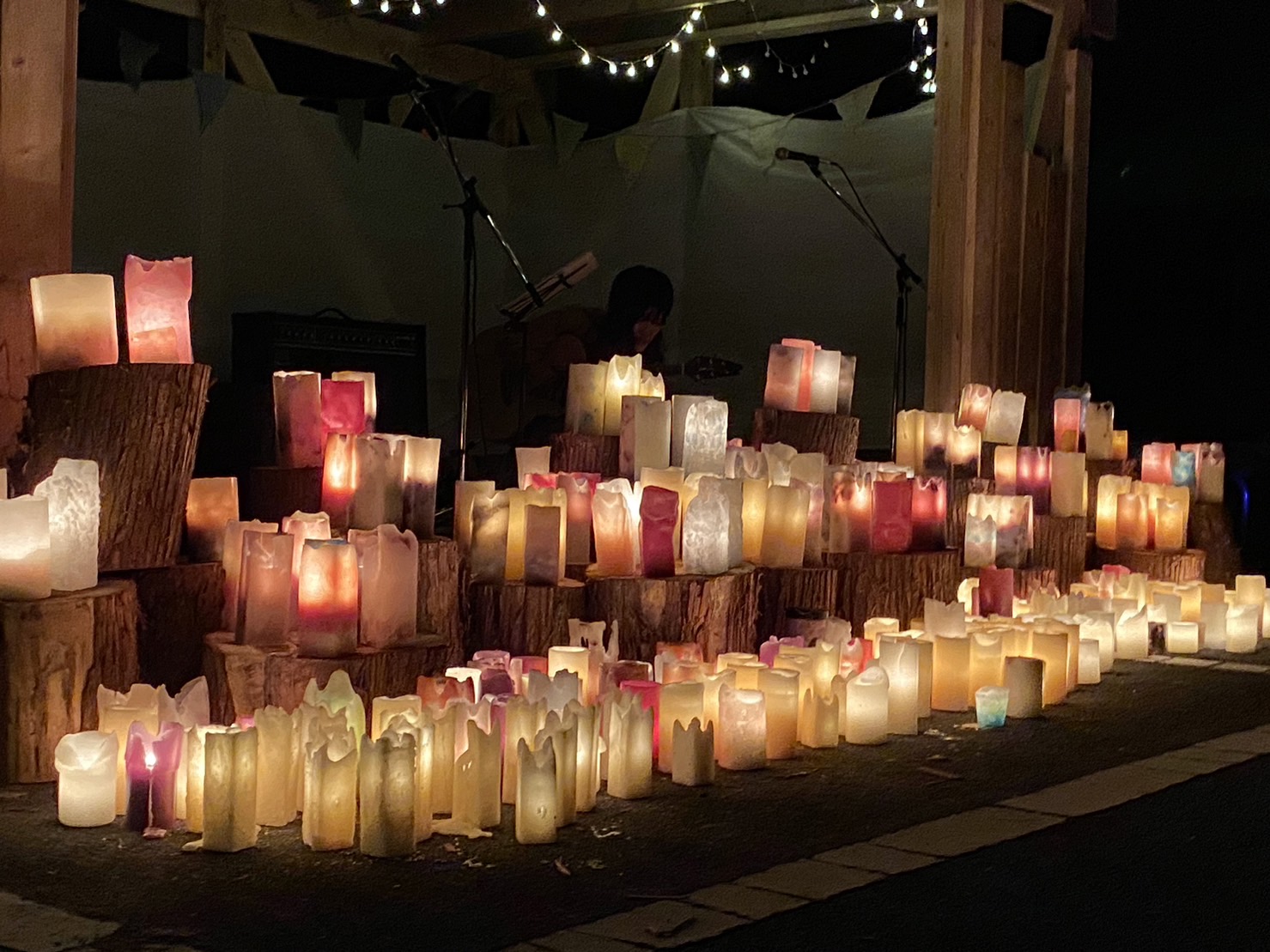 ↑暗くなる前に何百本ものキャンドルへの点灯式。