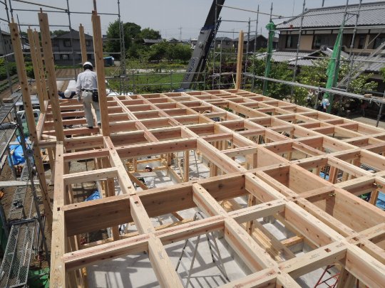 この梁の上に24mmの構造用合板を張り水平剛性を保ちます。