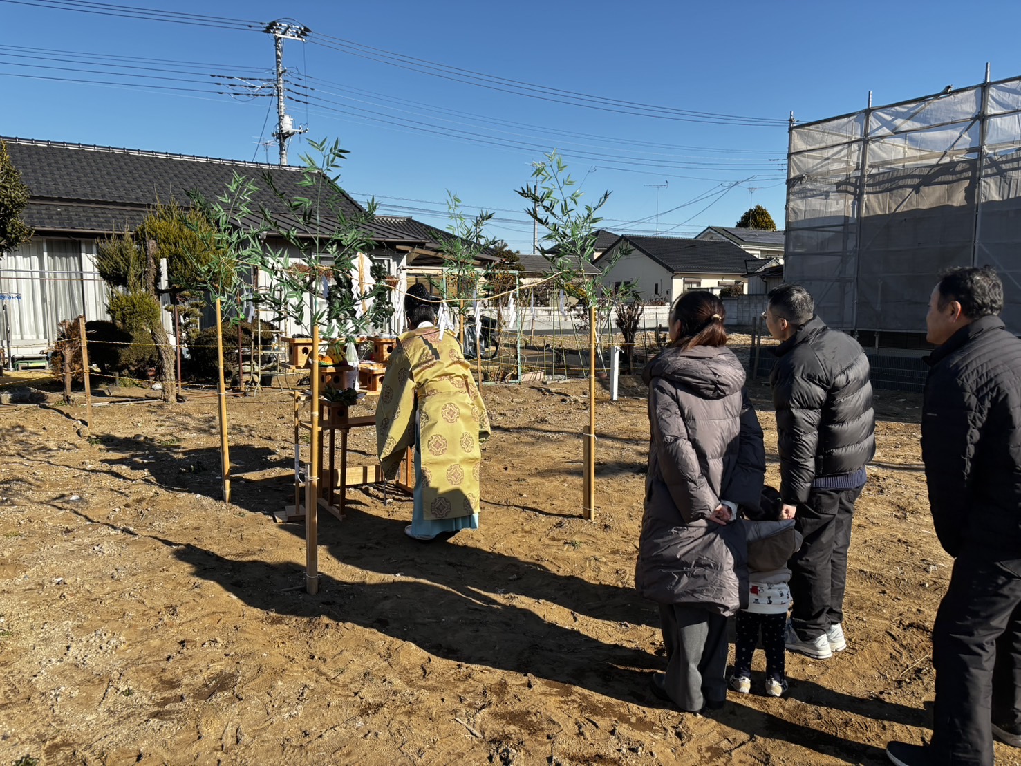 1/5は館林市のT様邸の新築工事スタートに先立ち、土地の安全、建物の安全、T様ご家族の健康と益々の発展を願い、地鎮祭が執り行われました。