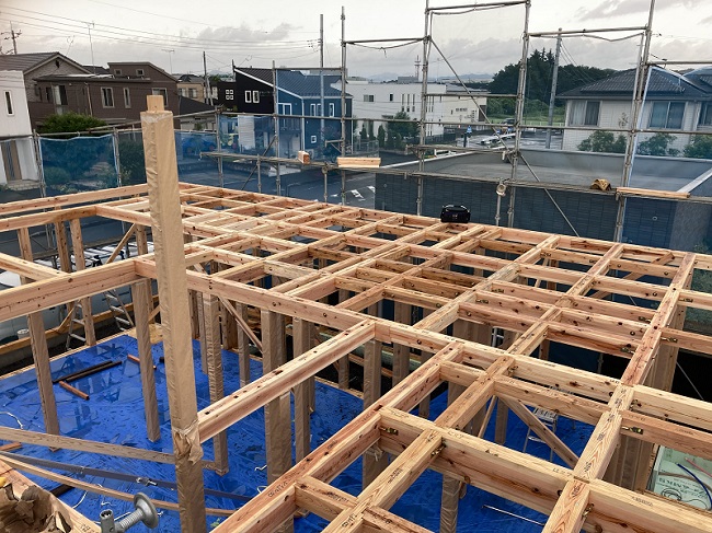そして、真夏の暑さから一転して、大雨の長雨となった今年のお盆でしたが、お盆明けに高萩の家が無事上棟となりました。