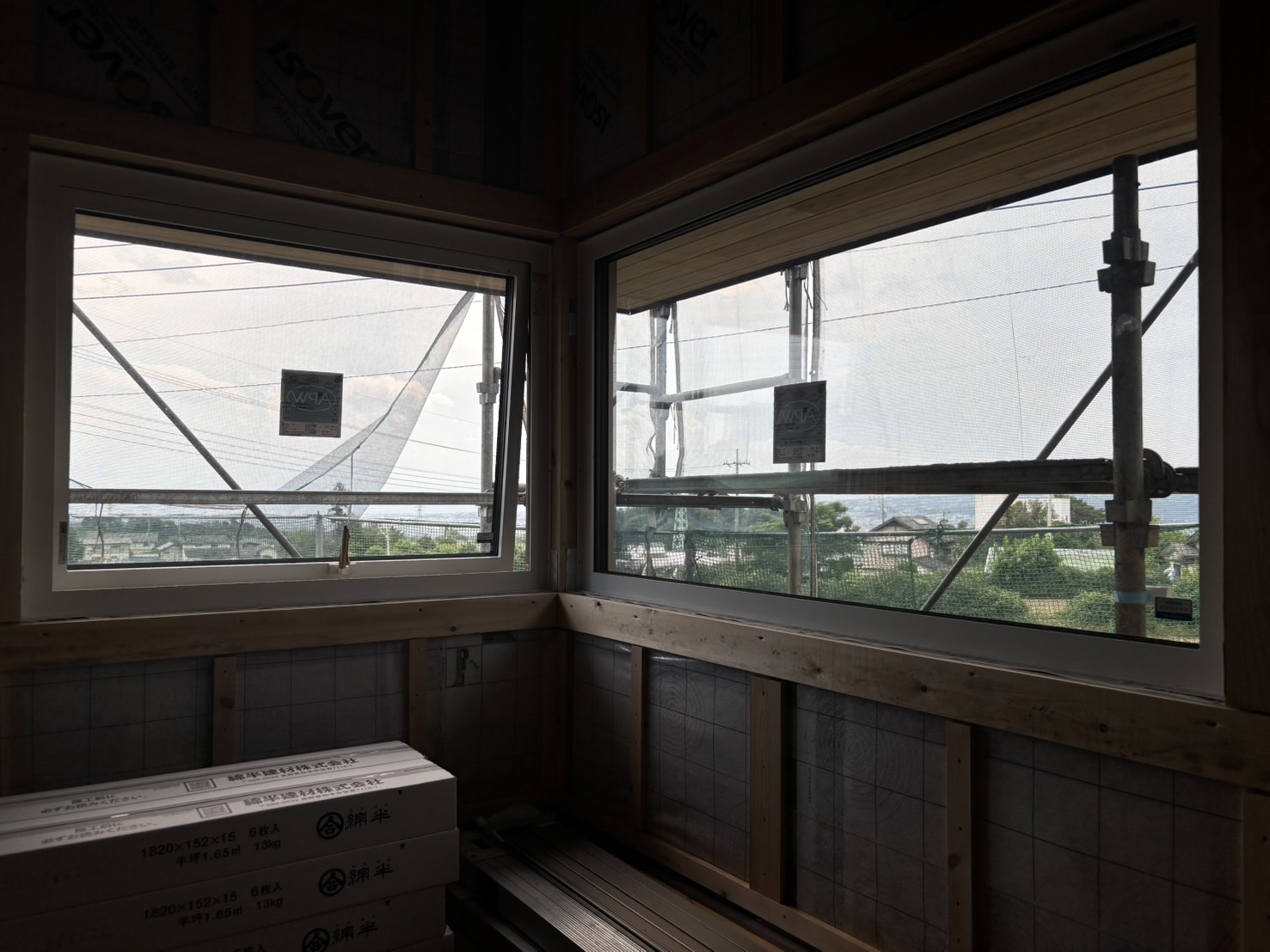 立地は渋川市の丘の上の方で見晴らしが良くて、その景色を眺めるための窓の配置の設計が素晴らしかったです。足場が外れたらもうここのスペースから動けなくなりそうなくらいですよね。