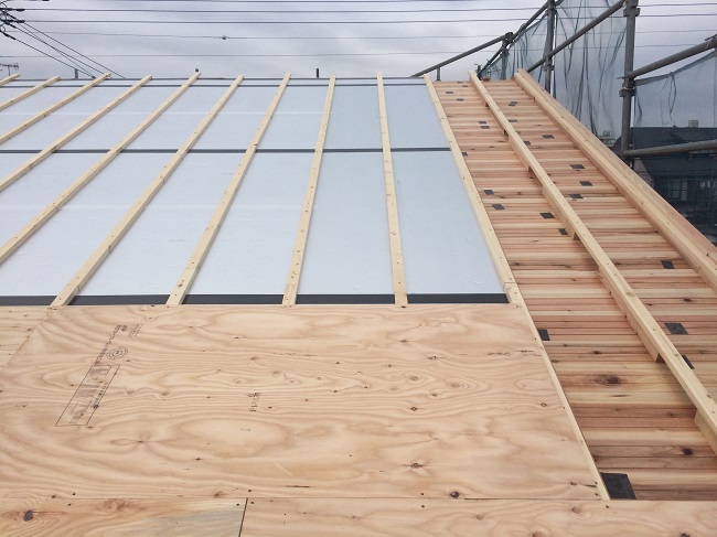 外壁の通気工法は一般的に行われ、外壁内部の耐久性を高める役目もある訳ですが、屋根に関しては野地板にルーフィングで屋根仕上げと、壁以上に過酷な条件下にあるにも関わらず、耐久性が考慮されていません。