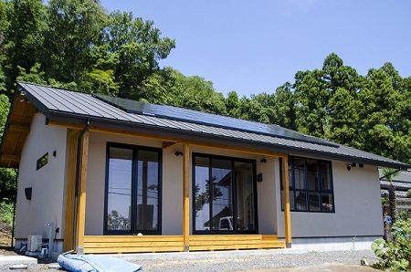 ぐんまの木100%(構造材)で造る、珪藻土と無垢の床板の呼吸する、健康で快適なお住まい。UA値=0.31、C値=0.5以下の高性能ゼロエネルギー住宅。一見平屋に見える外観は、一部子供室として2階部屋を確保した、子育て世代のこだわり住まい。 建築面積:104.20㎡(31.46坪) 延べ床面積:115.93㎡(35坪) 設計・施工:松島匠建(株)