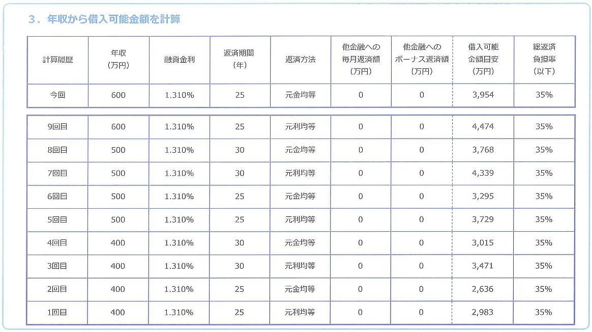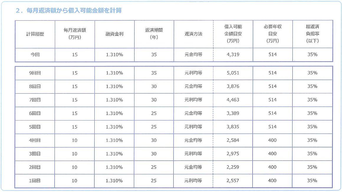 借入額の概算目安としてご参考にして下さい。