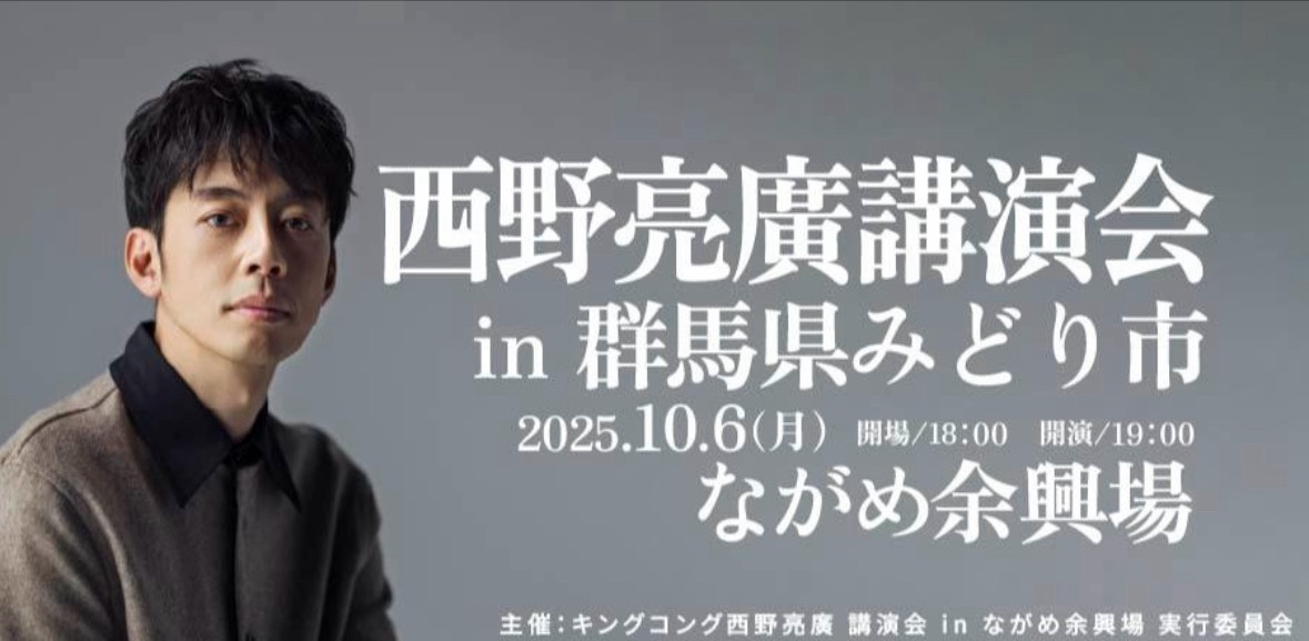 こんばんは。月曜日にキングコング西野の講演会がみどり市にあるながめ余興場というところで開催され、太田の丸山工務店の丸山さんと一緒に聞いてきて、西野のメッセージにだいぶ心を奪われた聖士です。