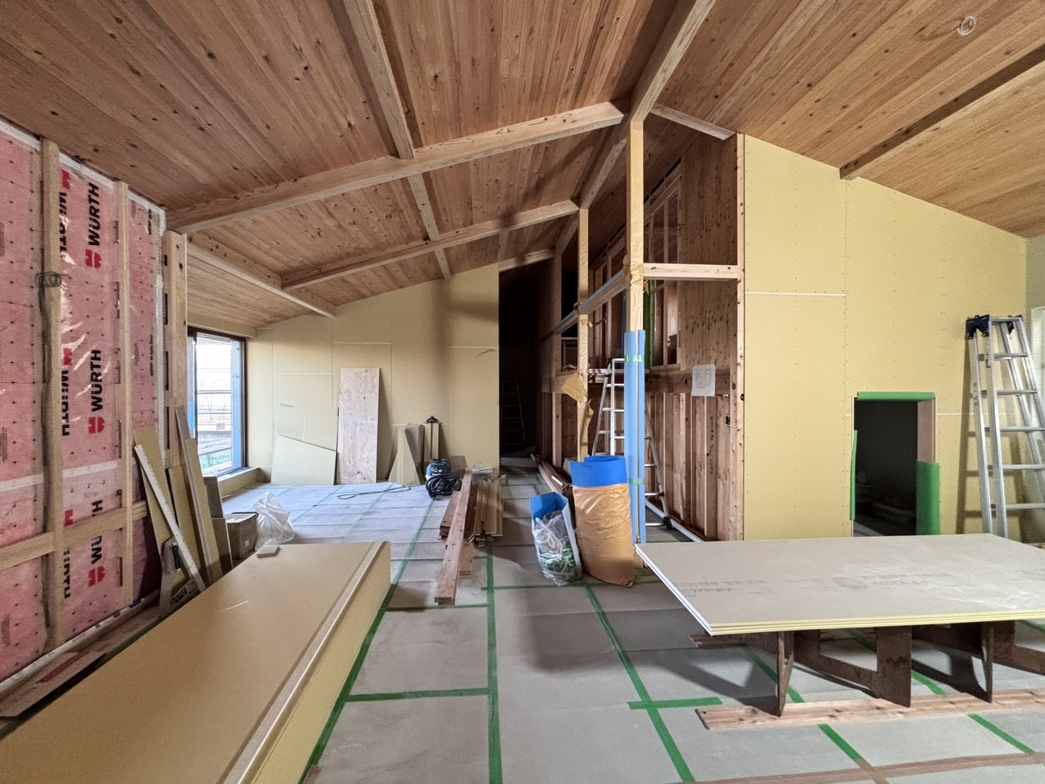 ですので、現在進行中の西国分町の新築現場では、室内の壁の石膏ボードを『えっほ、えっほ』と毎日作業着を真っ白にしながら張っています。